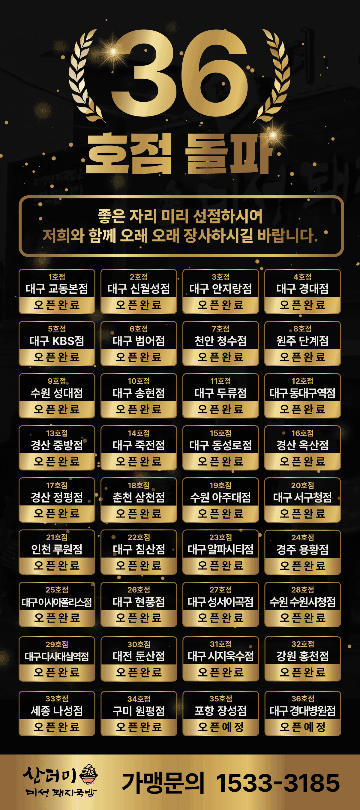 30호점 돌파 기념  시 단위 첫번째 매장  가맹비 면제 !